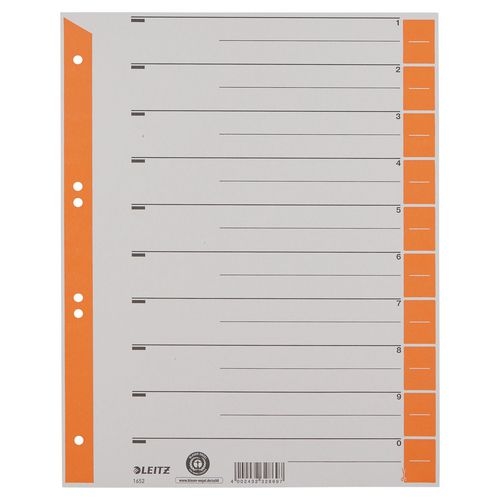 Leitz 1 bis 10 Trennblätter DIN A4 Überbreite Orange 10-teilig Pappkarton 6 Löcher 1652 100 Stück