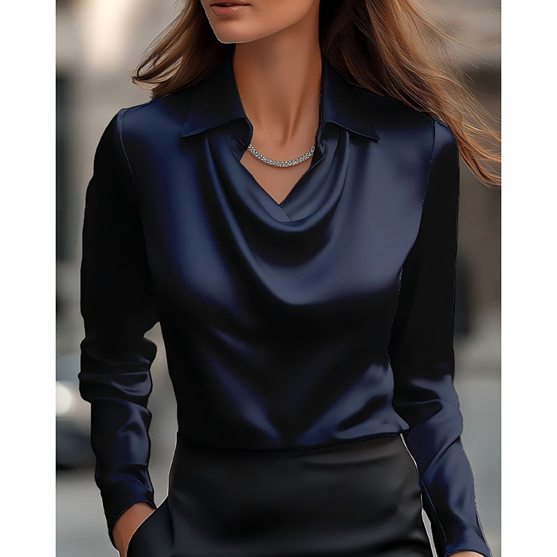 Women's Shirt Blouse Satin Plain Modern Casual Long Sleeve Shirt Collar Regular Elegant Tops Drape Neckline Daily Going out Ruched Loose Fit Black Wine Navy Blue Blue Khaki Fall
