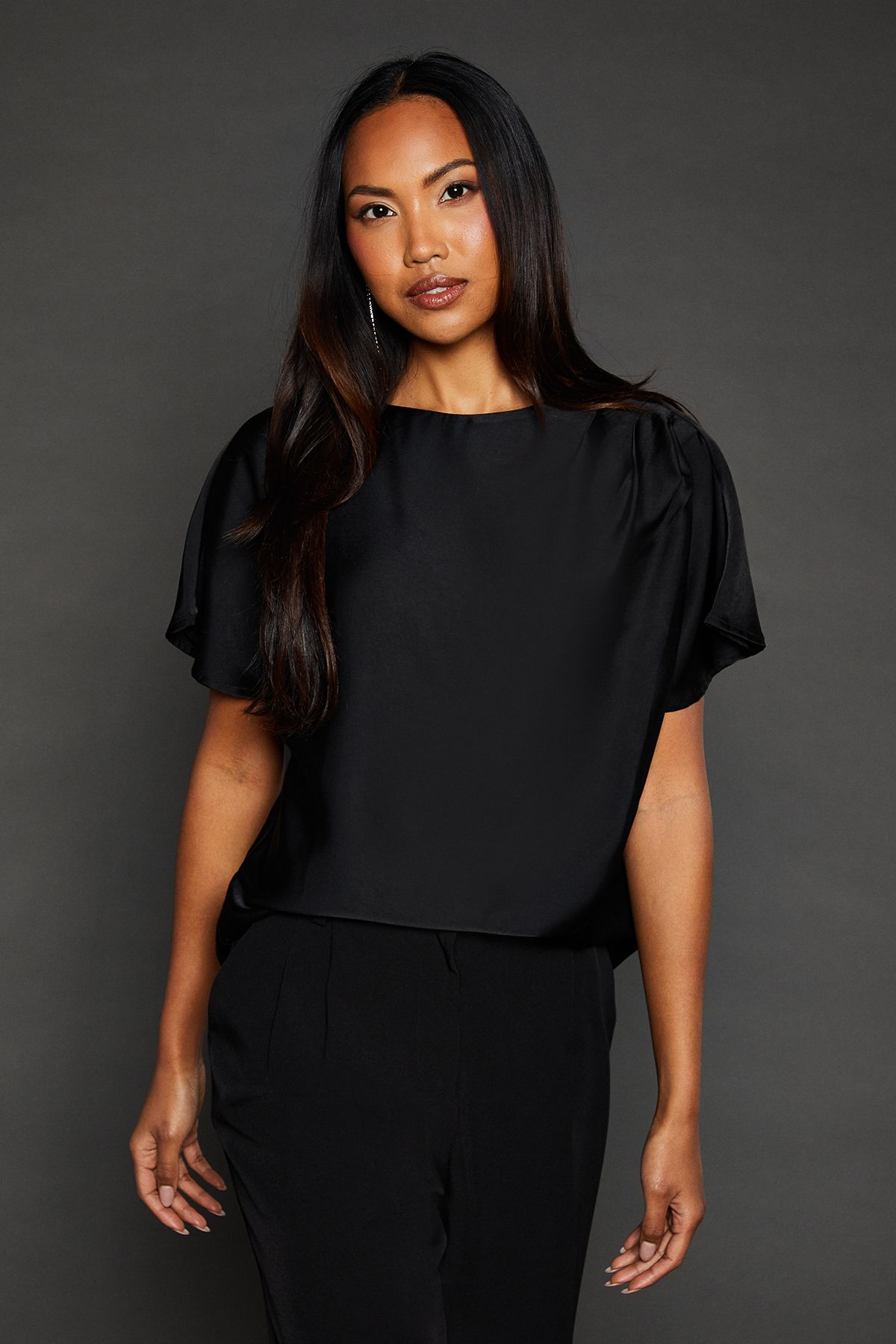 Principles Womens Satin Drape Shoulder T-shirt - Black - Size 14 UK | Principles Sale | Discount Designer Brands