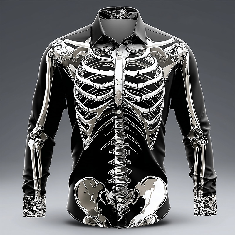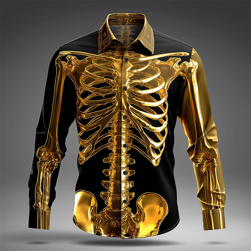 Men's Metal Finish Skeleton Costumes Shirt Button Up Shirt Long Sleeve Dark Punk Gothic Style Outdoor Holiday Summer Spring Turndown 3D Print Collared Shirts Black Grey Gold