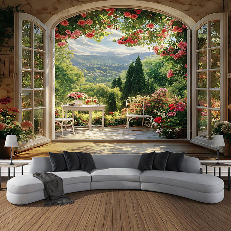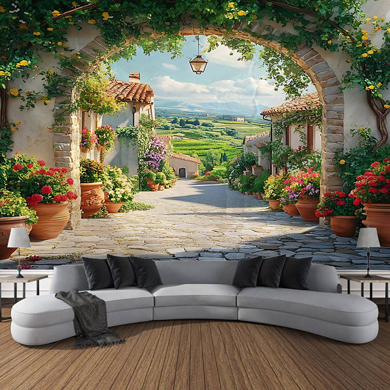Landscape Of Plants Flowers Arched Doors And Small Paths Hanging Tapestry Wall Art Large Tapestry Mural Decor Photograph Backdrop Blanket Curtain Home Bedroom Living Room Decoration