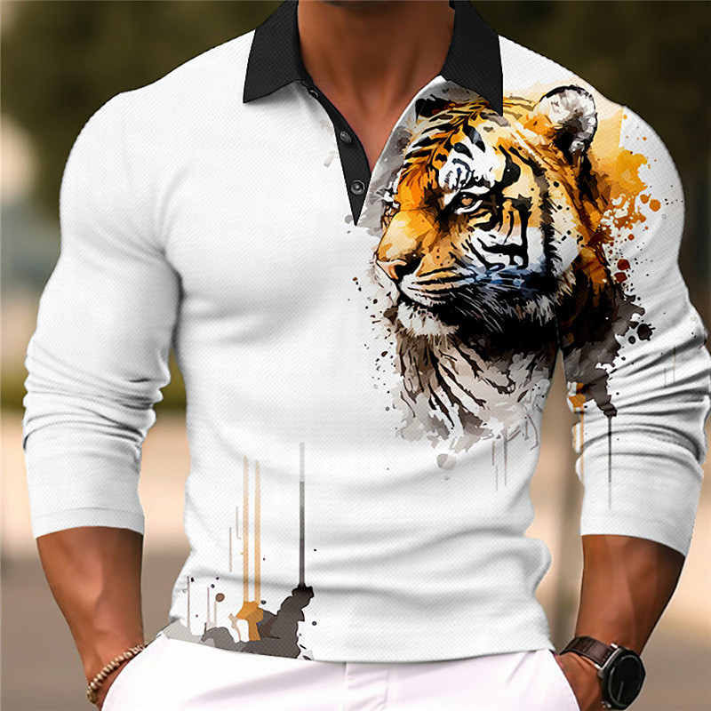 Men's Tiger Polo Shirts Golf Shirt Short Sleeve Polo Shirts Collared Shirts Funny Streetwear Vacation Wear Party Outfits Buttons 3D Print Spring Summer Gray