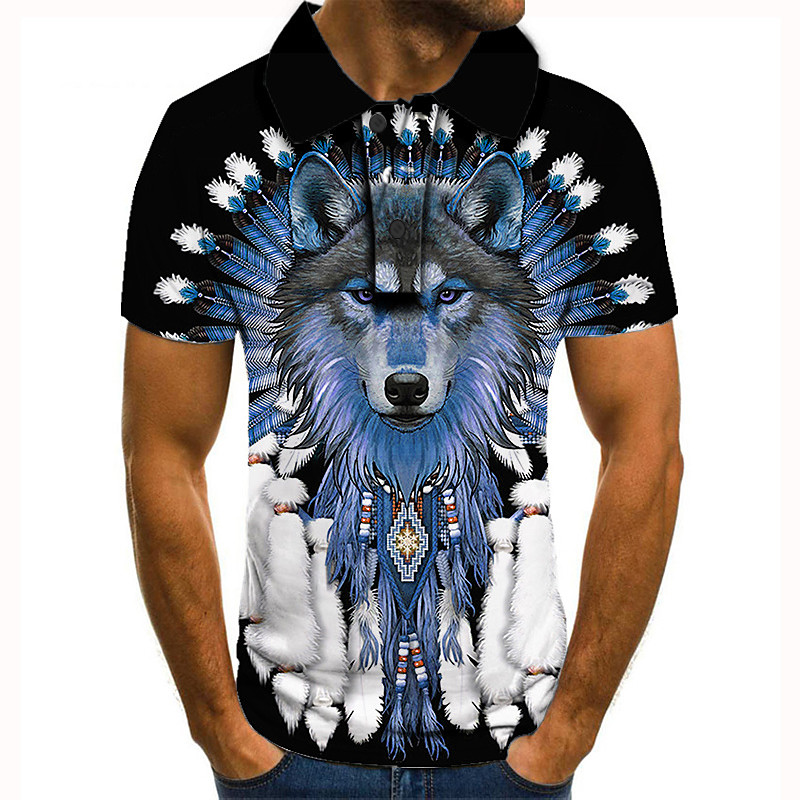 Men's Wolf Polo Shirts Golf Shirt Short Sleeve Polo Shirts Collared Shirts Casual Funny Streetwear Vacation Wear Party Outfits 3D Print Buttons Black Red Blue
