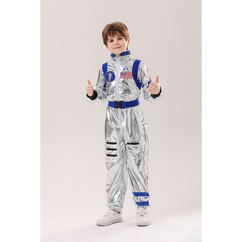 Astronaut Costume Jumpsuit Carnival Costume Onesie Group Costumes Silver Space Suit for Kid's Boys Girls' Party Easy Carnival Costume