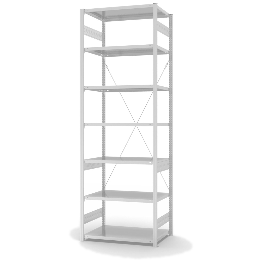 PROREGAL Lebensmittel-Fachbodenregal Stecksystem T-Profil | HxBxT 300x100x30cm | 7 Ebenen | Fachlast 150kg | Hygienische Beschichtung | Weiß Stahl