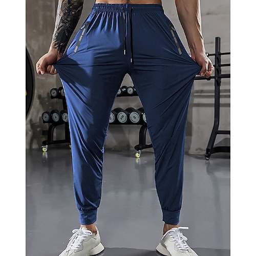 Herren Sporthose GYM-Hose Training Sportlich Täglich Hohe Dehnung Bequem Atmungsaktiv Kordelzug Tasche Elastischer Bund Einfach Volle Länge Sport Lässig Sportkleidung Schwarz Blau Mikroelastisch