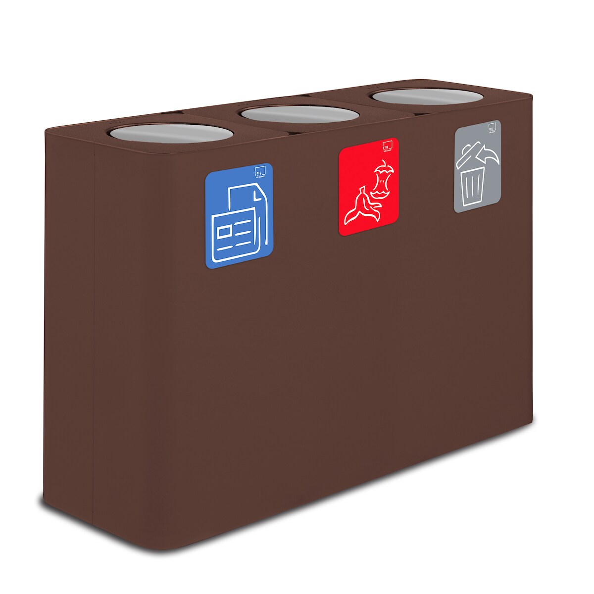 Stil Casa PURE Abfallsammelsystem, lackierter Stahl, 115x38xh. 80 cm, Abdeckung mit kippschwenkbarem Deckel, 300 Liter, corten.