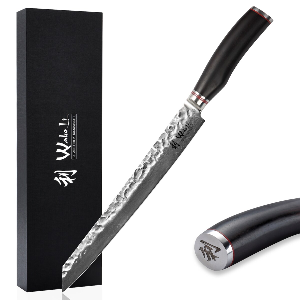 Wakoli EBO Damast Fleischmesser Kiritsuke 27,5cm Klinge schwarzer Eichenholzgriff