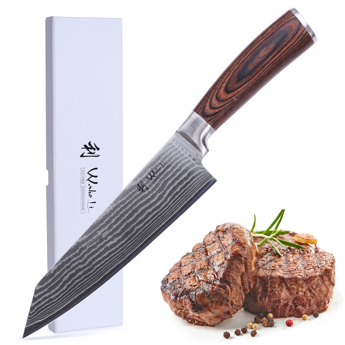 Wakoli Nussbaum Damast Chefmesser Kiritsuke I 20 cm Klinge I Nussbaumholzgriff