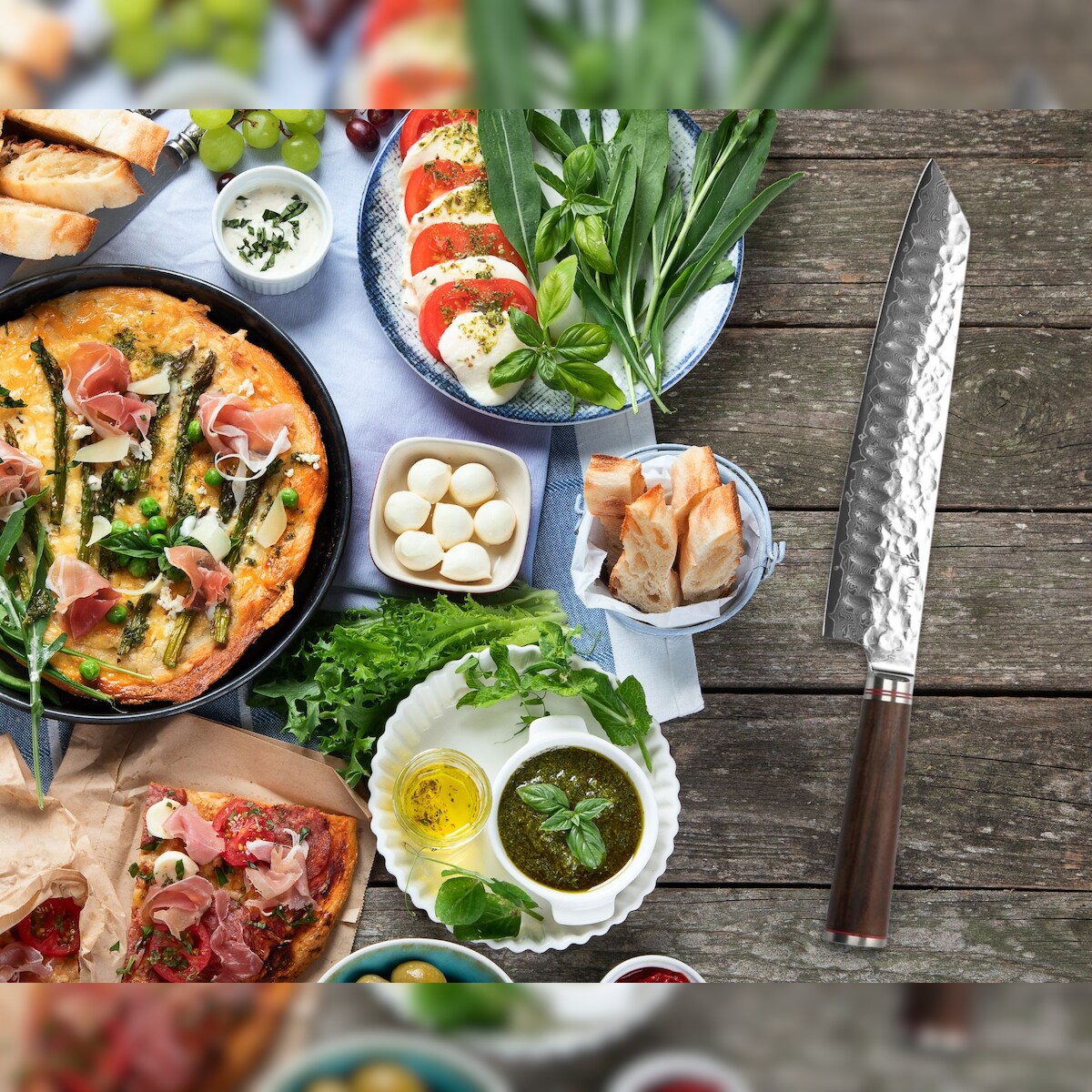 Wakoli Nussbaum Damast Fleischmesser Kiritsuke I 20 cm Klinge I Nussbaumholzgriff