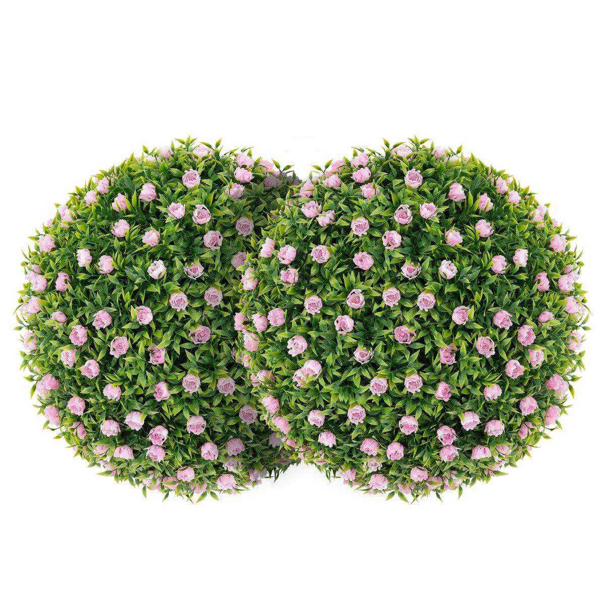 Setti 2 puksipuupalloa, UV-kestävät koristepallot, topiary tekokasvi, koristekasvi, halkaisija 28 cm, pinkki