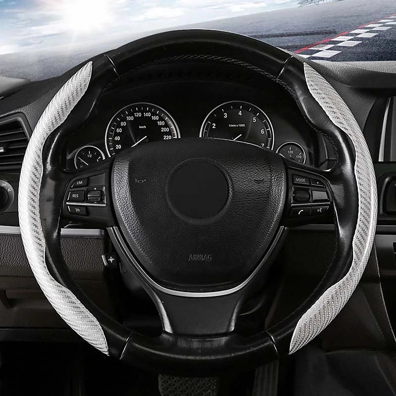Universal Laser Carbon Fiber Pattern Steering Wheel Cover Stylish Anti-Slip Soft Grip Protector for Car Interior Decoration Comfortable Driving Accessory