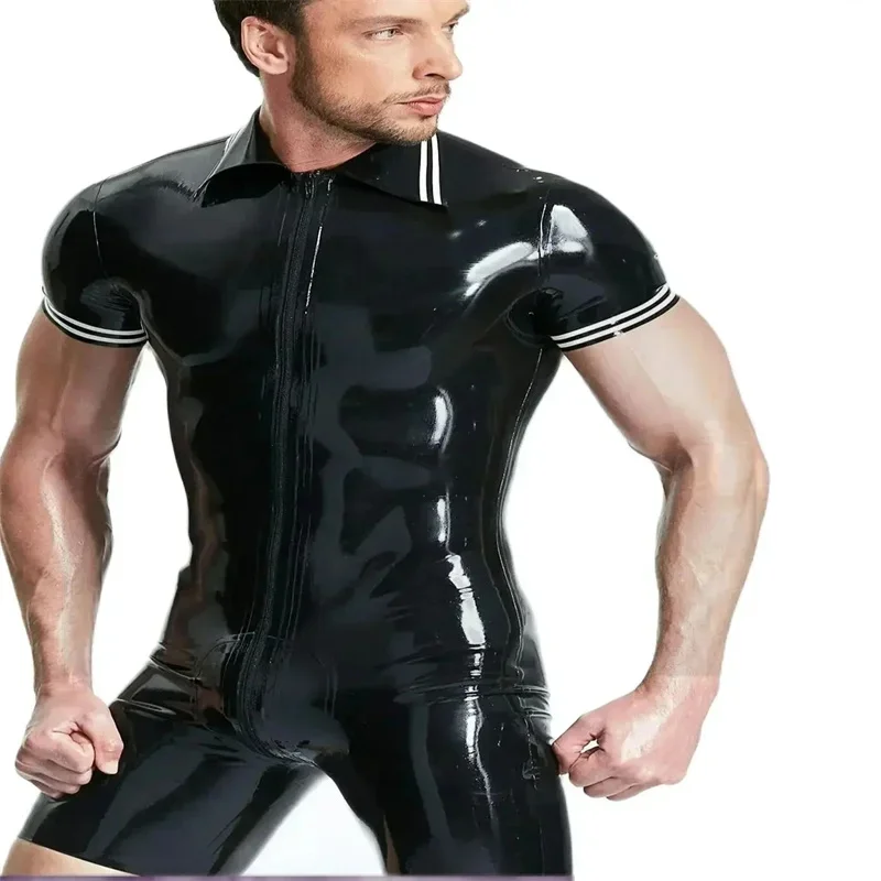 Latex Catsuit Manche courte Noir