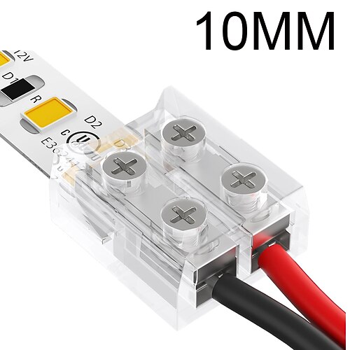 12 Stück LED-Steckverbinder, 2-polig, 10 mm, lötfrei, für transparente LED-Streifen, inklusive Schraubendreher, für 12-V- und 24-V-LED-Streifen (einfarbig).