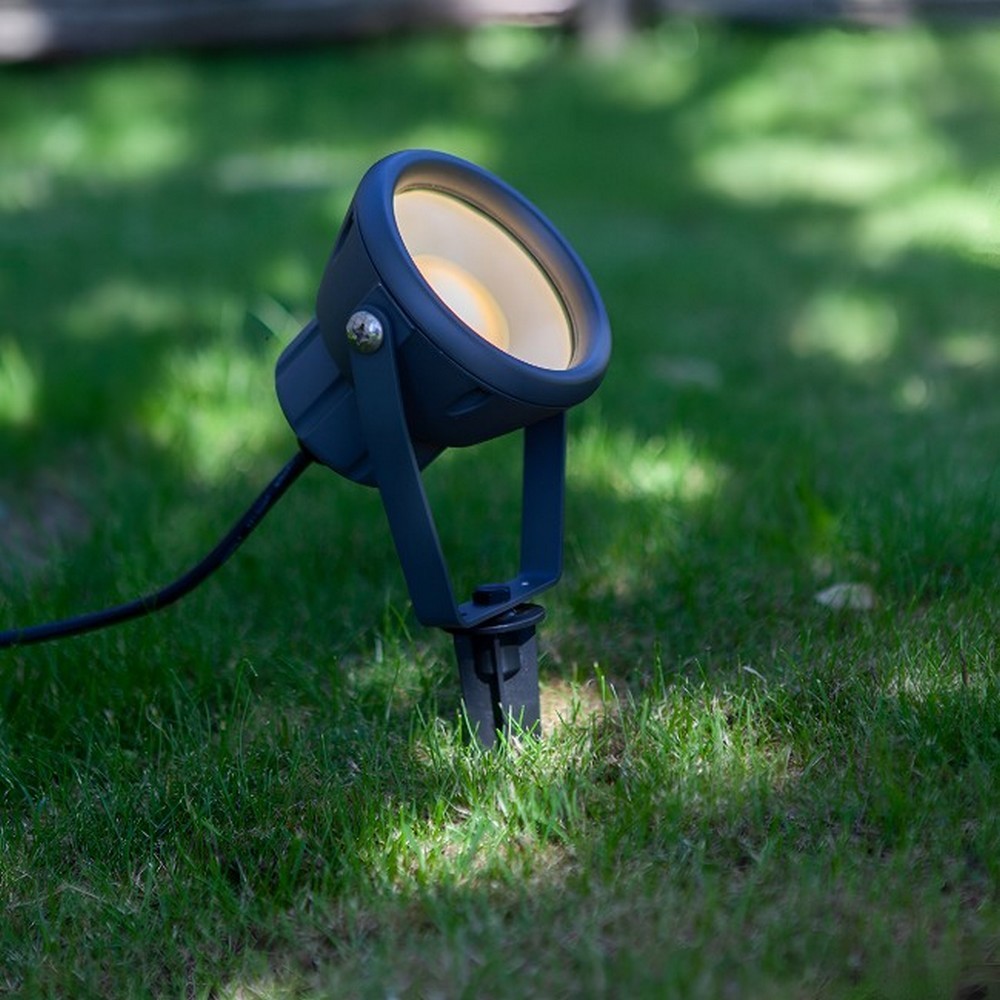 Lutec Mini Leto - Grondspot op spiek met stekker - slimme verlichting - Lutec Connect - 11,8 x 13,4 x 33,2 cm - 8W LED incl. - IP65 - donkergrijs