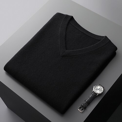 maglione da uomo in pura lana di alta qualità, cashmere, con scollo a V, classico, morbido, caldo e traspirante