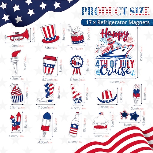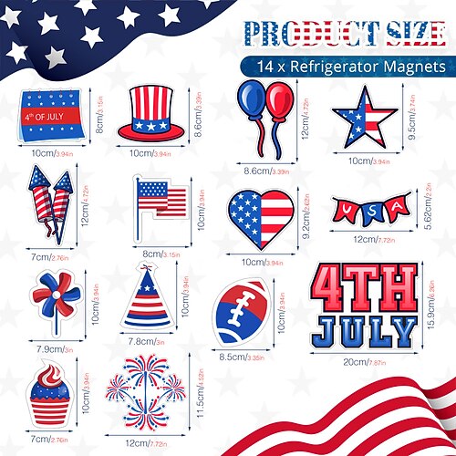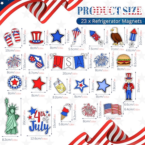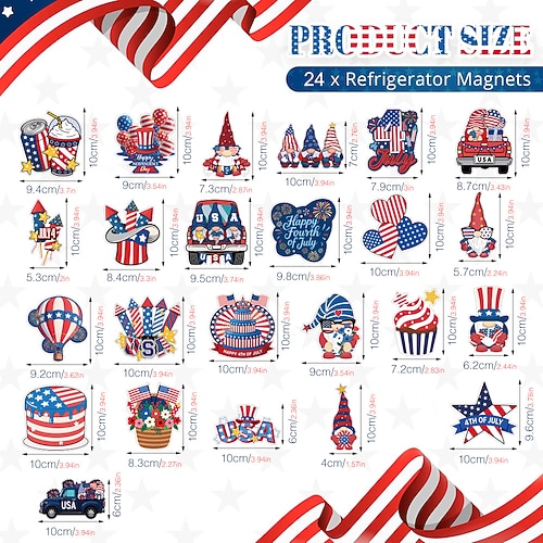 adesivi magnetici per frigorifero per il giorno dell'indipendenza degli Stati Uniti, adesivi per auto, decorazioni per le feste, adesivi magnetici impermeabili con cartoni animati