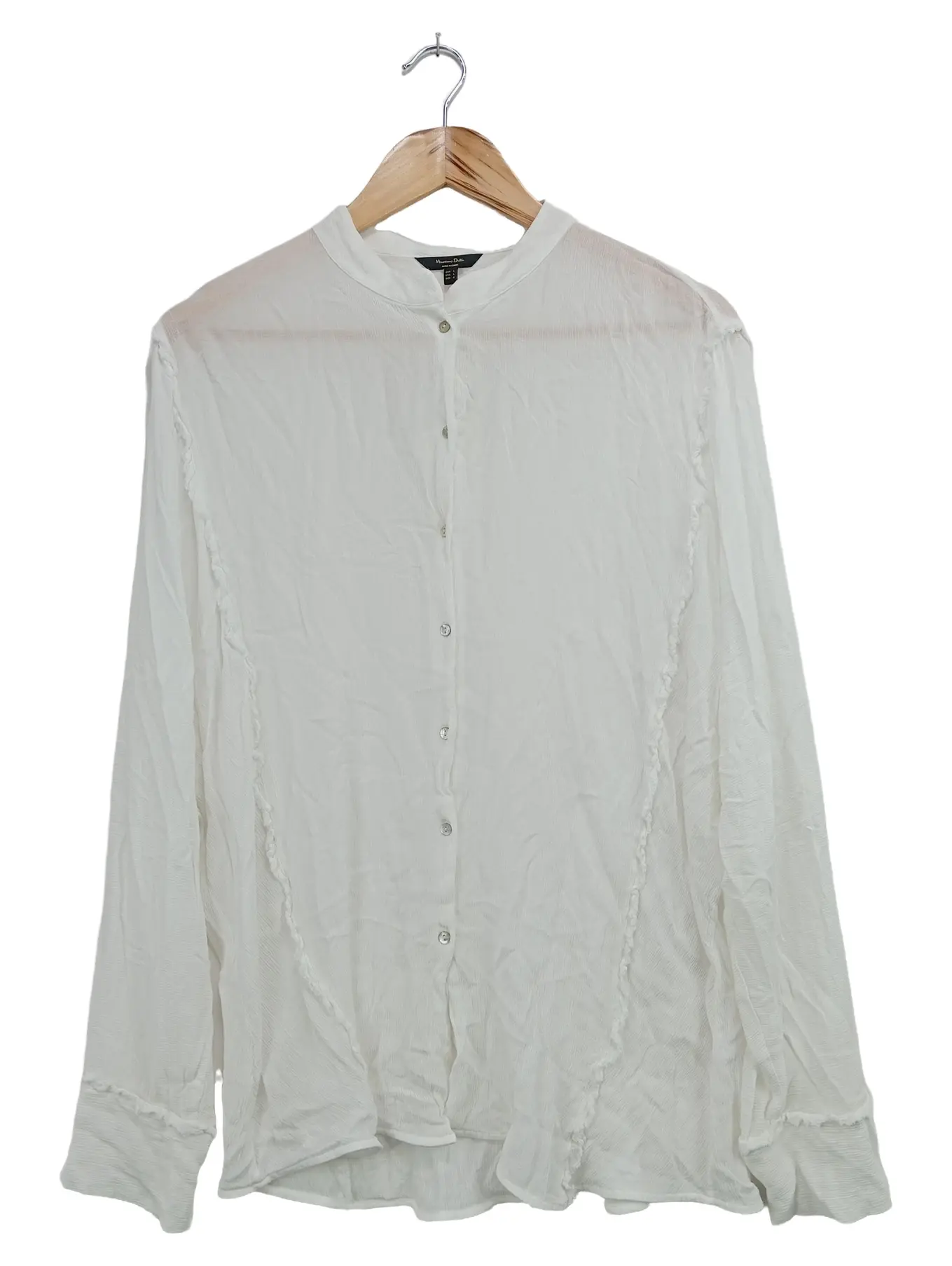 MASSIMO DUTTI Langarmshirt S Weiß Leinen