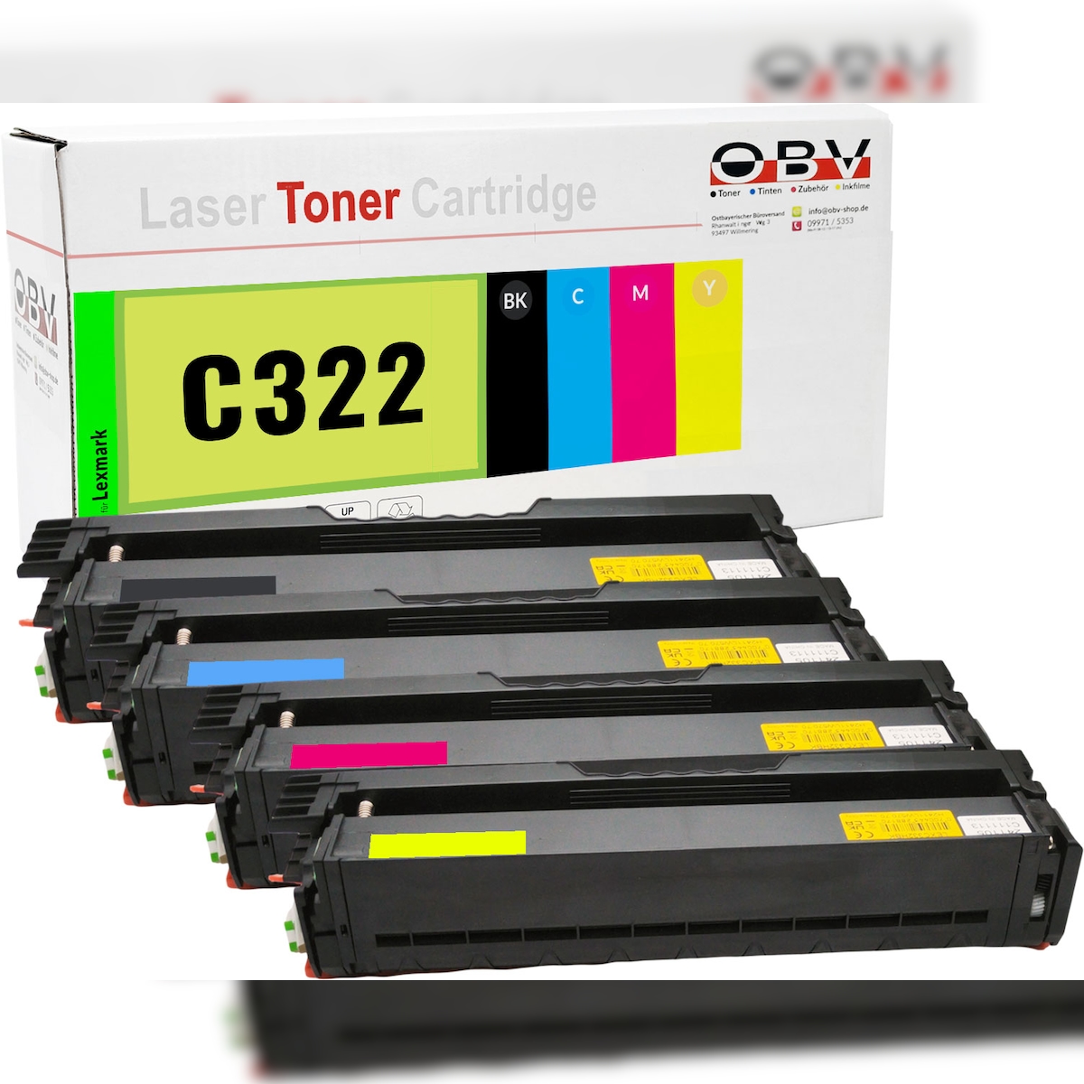 OBV Toner Set BK/C/M/Y kompatibel zu Lexmark C3224dw MC3224dwe - Ersetzt C3220K0 C3220C0 C3220M0 C3220Y0 - ca. 1500 Seiten