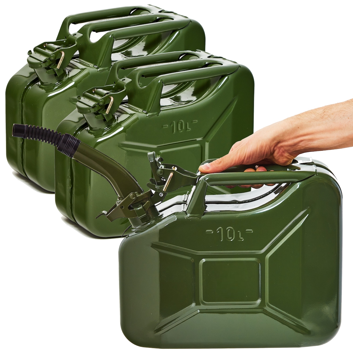 BW® Kraftstoffkanister Metall Benzinkanister 2x 5 Liter mit Ausgießer - Bronzegrün - RAL 6031-F9 - TÜV-geprüft und UN-Zulassung - Made in Europe