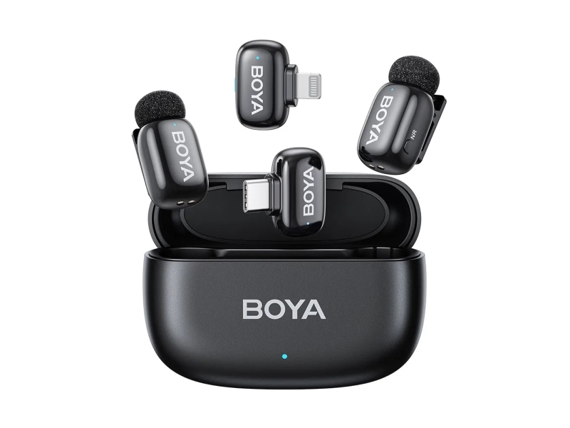 BOYA Trådlös Mini Lavaliermikrofon USB-C 2.4Ghz 2 Sändare + 1 Mottagare BY-V20