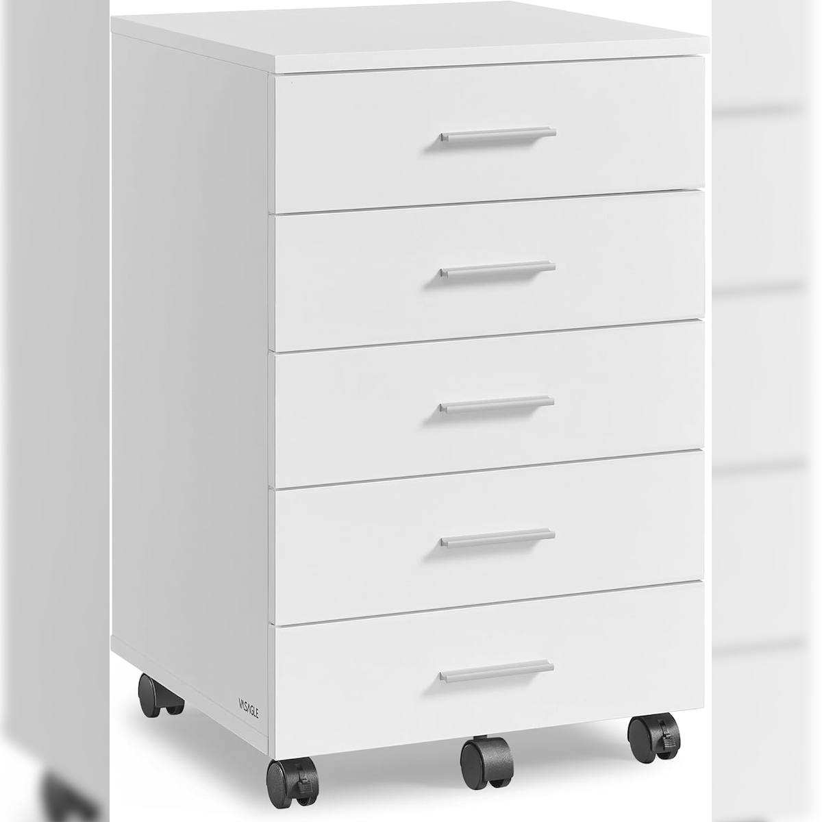 Rollcontainer mit 5 Schubladen, Druckerständer 40Tx42Bx65,7H cm mit schraubenlosen Gleitschienen, mobiler Aktenschrank, weiß