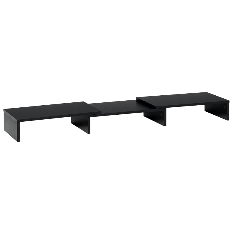 MODFU Monitorständer aus Holz Schwarz 117x24x10 cm verstellbare Länge und Schwenkwinkel mit 3 Ablageflächen ergonomische Bildschirm Erhöhung für Büro