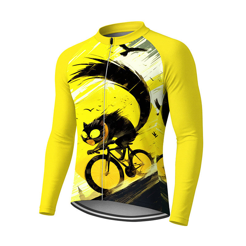 Men's Cycling Jersey Downhill Jersey Cat Character Contrast Color Long Sleeve Bike Tee Tshirt Jersey Compression Clothing with 3 Rear Pockets Mountain Bike MTB Road Bike Cycling UV Sun Protection
