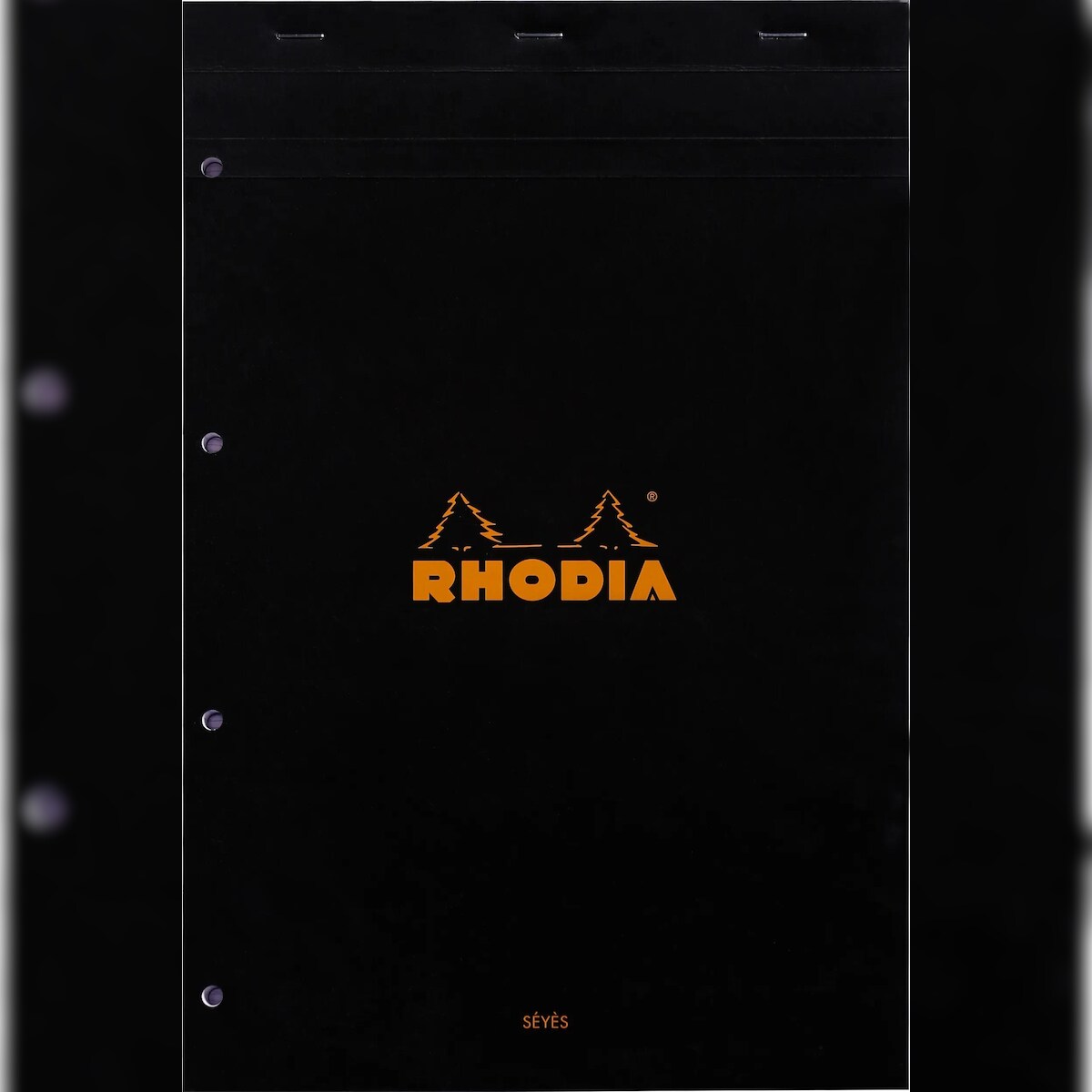 Rhodia 5x Gehefteter Notizblock Rhodia No.20 A4+, 80 Blatt Seyès französische Lineatur 80g, 4-fach gelocht - Schwarz 201009C