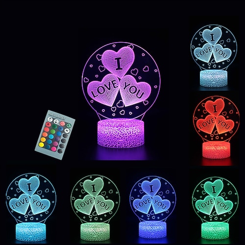 „Ich liebe dich", Herz-Nachtlicht für Kinder, 3D-Illusions-Nachtlampe, 16 wechselnde Farben mit Fernbedienung, Raumdekoration, Geschenke für Kinder, Jungen und Mädchen