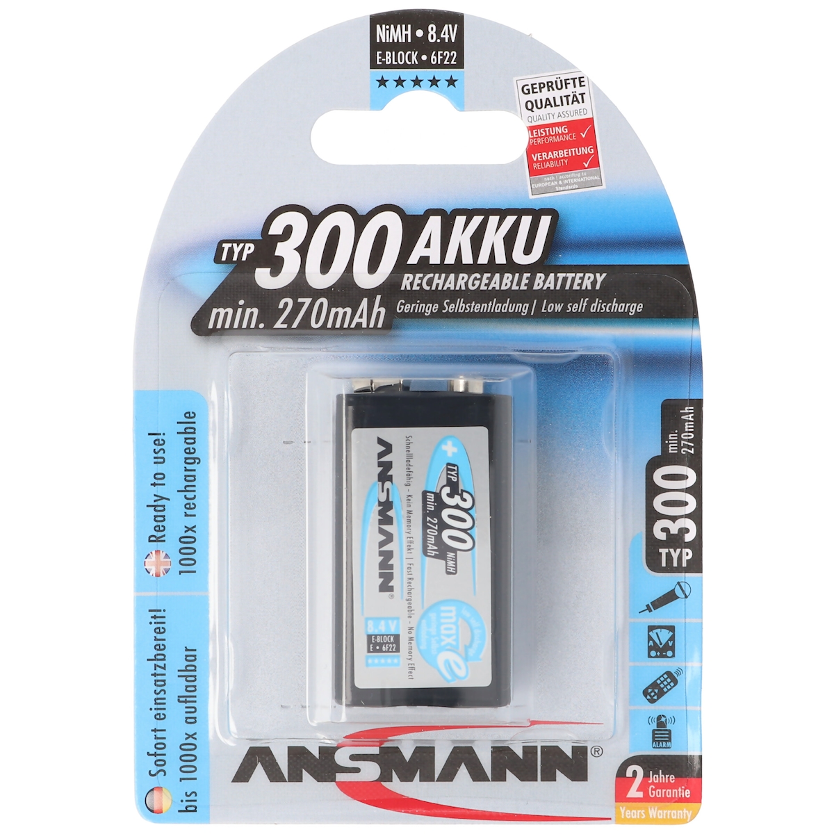 Ansmann NiMH E Typ. 300 min. 270mAh NiMH-Akku 9V-Block E, 6F22, 8.4 Volt