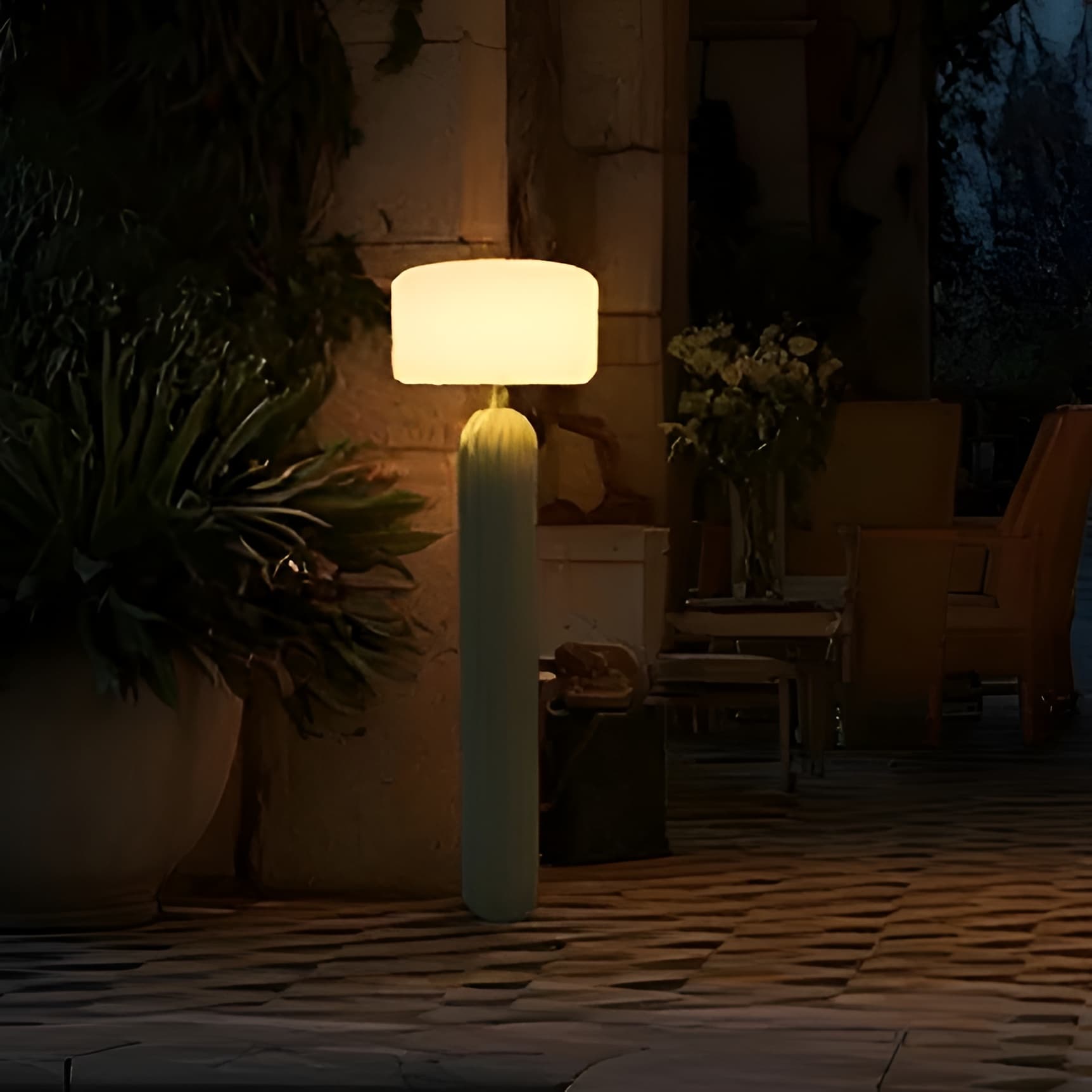 New Garden Monica 150 - oplaadbare vloerlamp op batterijen met afstandsbediening - Ø 35 x 153 cm - LED incl. - IP54 - beige crèmekleurig - 3000K-6500K