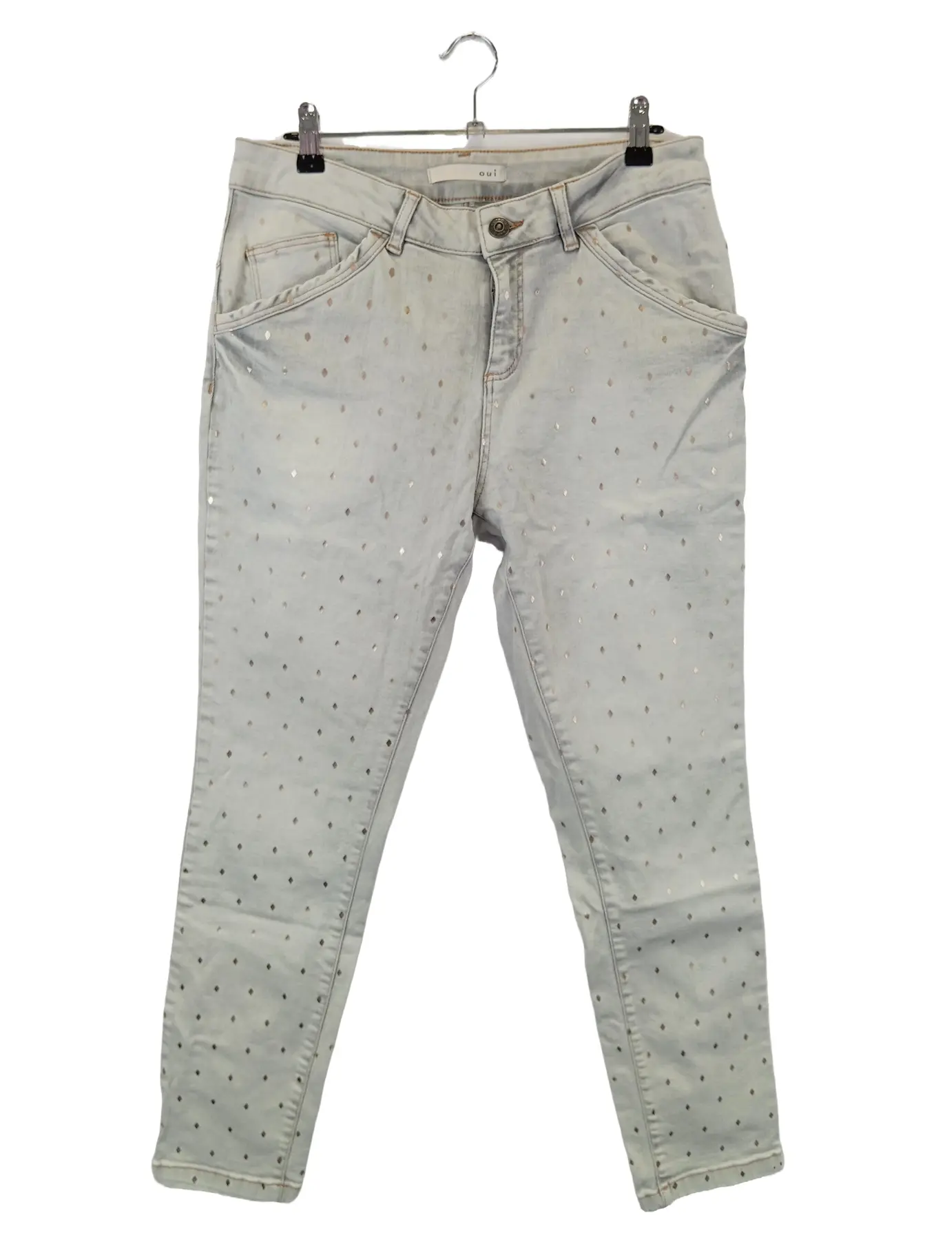 OUI Damen Jeans Slim Fit Gr. 38 Hellgrau Nieten Röhrenjeans