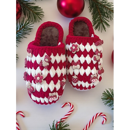 pantofole natalizie da donna con ricami di vino e cocktail: pantofole da interno comode e morbide, ideali come regalo di Natale e per il relax invernale