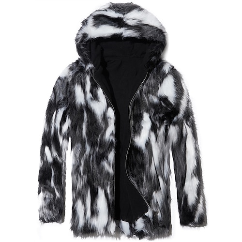 Per uomo Giacca Invernale Giacca Casual Cappotto in Pelliccia Sintetica Vacanza Quotidiano Calore Termico Tasca Pelliccia Inverno Leopardato Moda Streetwear Con Cappuccio Regolare Nero Giacca