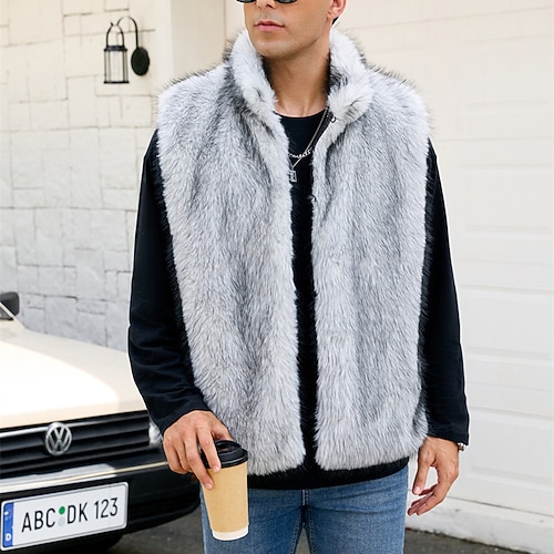 Per uomo Gilet Cappotto di pelliccia sintetica All'aperto Quotidiano Moda Casual Autunno Inverno Pelliccia sintetica Calore Termico Confortevole Semplice Colletto Mao Vestibilità regolare Bianco