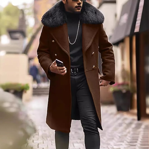 Per uomo Cappotto Cappotto da marinaio Cappotto di pelliccia sintetica Trench lungo Trench Casuale Autunno Inverno Poliestere Capispalla Abbigliamento Classico Formale Semplice Bordo in pelliccia