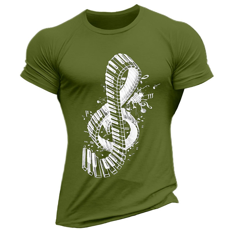 Mens Graphic T-Shirt with Piano Key Treble Clef Music Design Short Sleeve