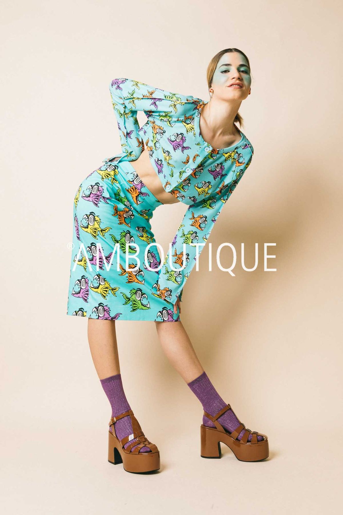 Crop piranha maglieria white azzurro piranha, l