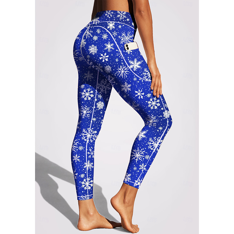 Women's pilates leggings fitness pants Gym Leggings Pockets Stamp Duty Side Pockets Pilates Gym Gym Workout Pants Tights Leggings Christmas Burgundy Blue Fuchsia Sports Activewear Stretchy Tight Fit
