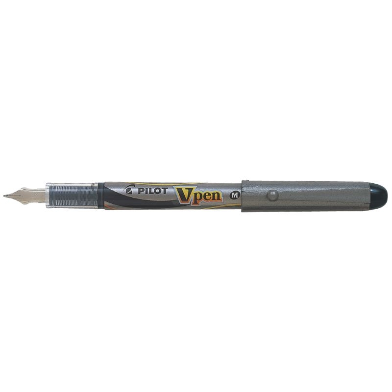 Pilot Vpen Penna stilografica, Punta media da 0,4 mm, Fusto argento, Inchiostro nero