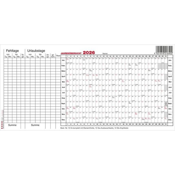GÜSS Austauschkarte für Personal-Planer Kalendarium 2025