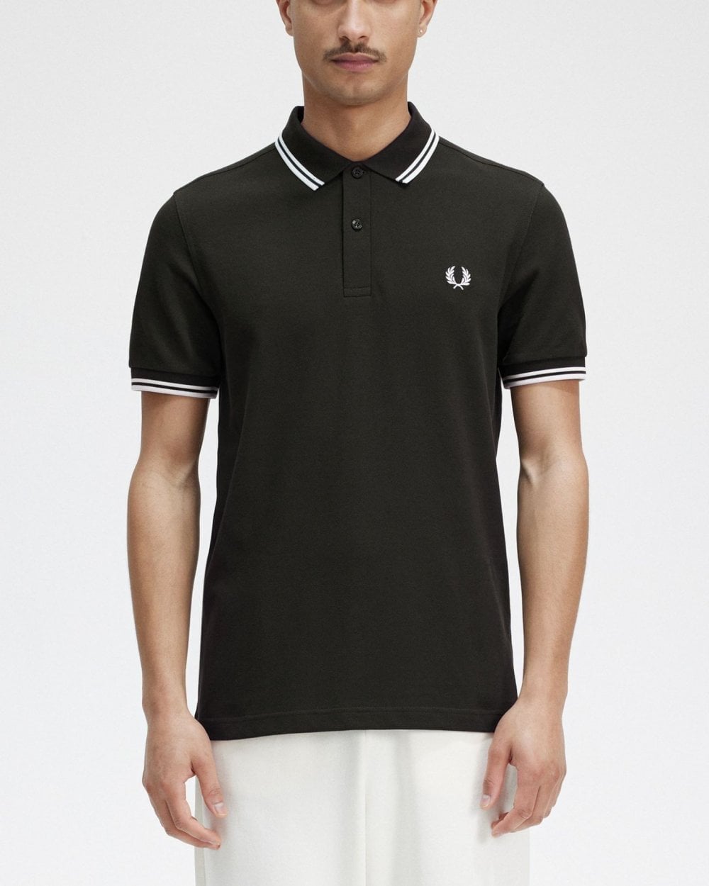 Fred Perry Mens M3600 Twin Tipped Polo Shirt In Black Cotton - Size Small | Fred Perry Sale | Discount Designer Brands