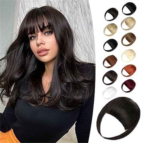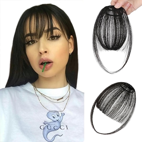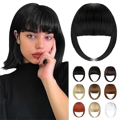 Clip-in-Pony, fransiger Pony, Haarspange, natürlicher Fake-Pony mit Schläfenpartie, Haarteile für Damen, Clip-in-Fake-Pony, Haarverlängerungen für den Alltag, dunkelschwarz