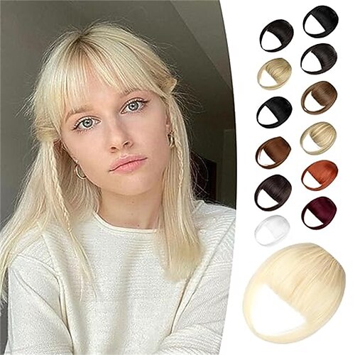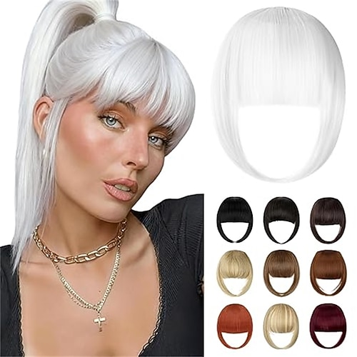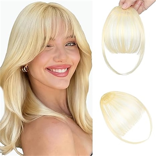 Clip-in-Pony, natürlicher Fake-Pony mit Haarclip, hellblonder, gebleichter, französischer Pony mit Schläfenpartie, Haarverlängerungen für Damen, Pony-Haarverlängerungen für den Alltag