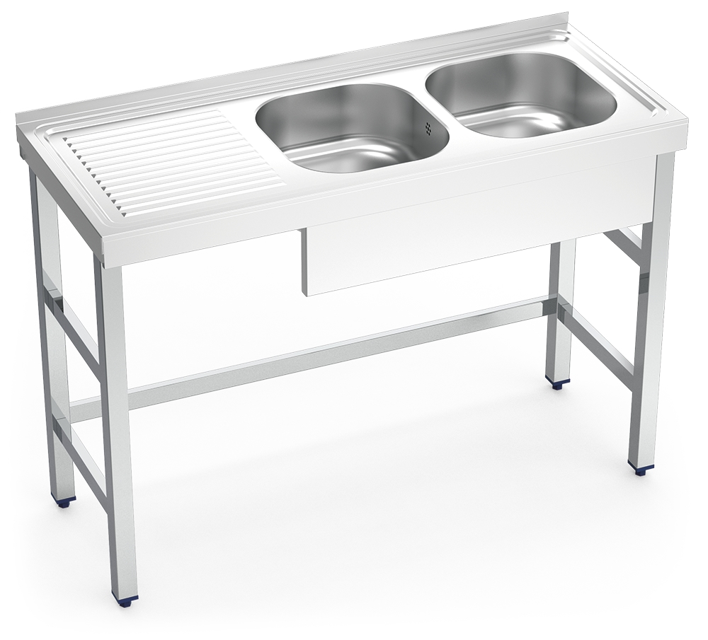 FRICOSMOS-Spüle mit Unterstützung 2C, EI 1200x500x850 mm. Eimerabmessungen 340x370x150 mm.