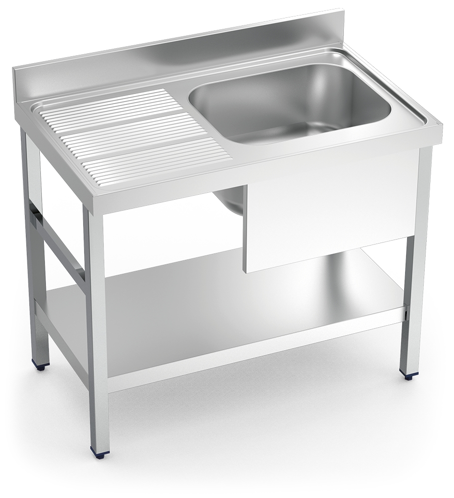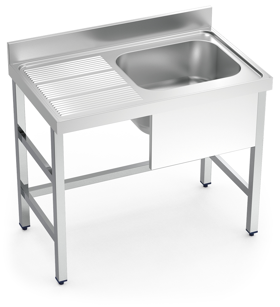 FRICOSMOS-Spüle mit Stütze zwischen 1C, EI 1000x600x850 mm. Eimerabmessungen 500x400x250 mm.