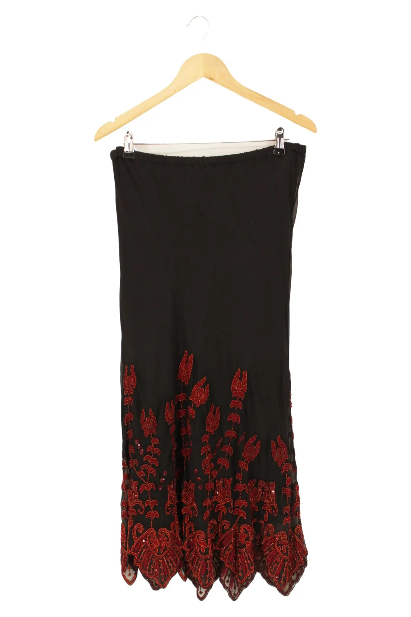 AE ELEGANCE Rock Damen 42 Schwarz A-Linienrock Spitzenverzierung
