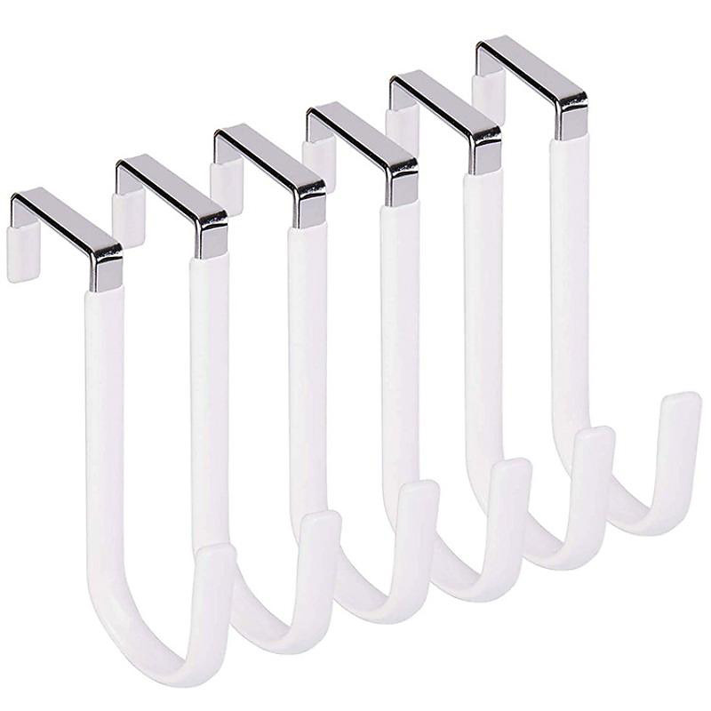 6pcs Over The Door Hooks, No-Drill Rubber-Coated Door Back Hooks, Non-Trace Clothes and Hat Hangers for Bathroom, Bedroom, Kitchen, and Office Storage