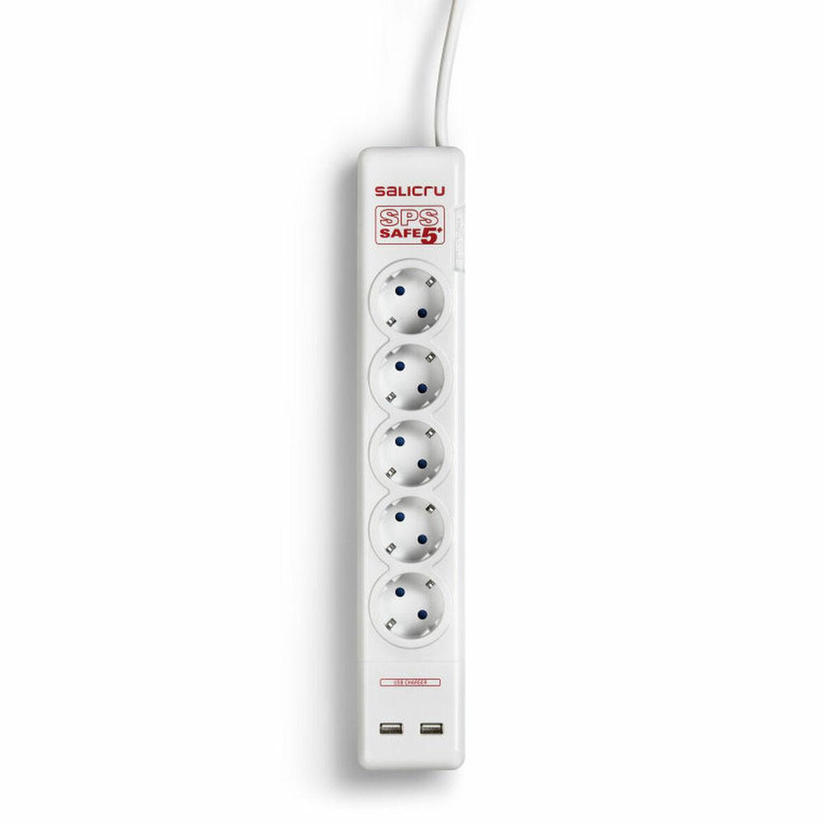 Salicru SAFE 5+ stikdåse med 2x USB - Hvid